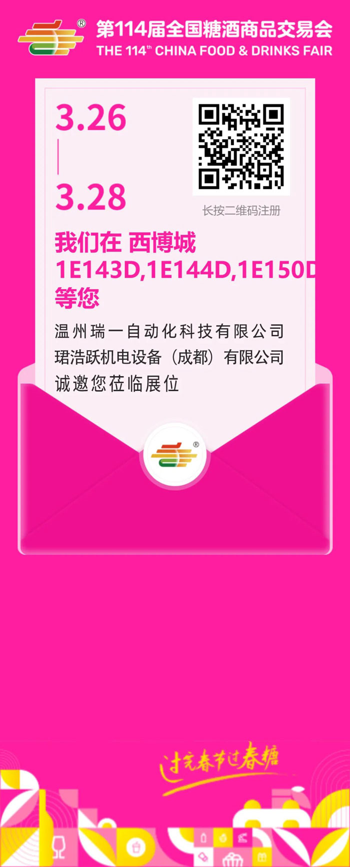 展会预告|瑞一自动化 & 珺浩跃机电邀您相约第114届全国糖酒商品交易会!